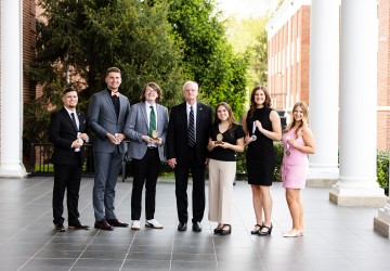 The T.J. Roberts Campus Leadership Award is presented to a graduating senior who exemplifies leadership on campus while maintaining high academic standing. This year’s recipient is Owen Scala.